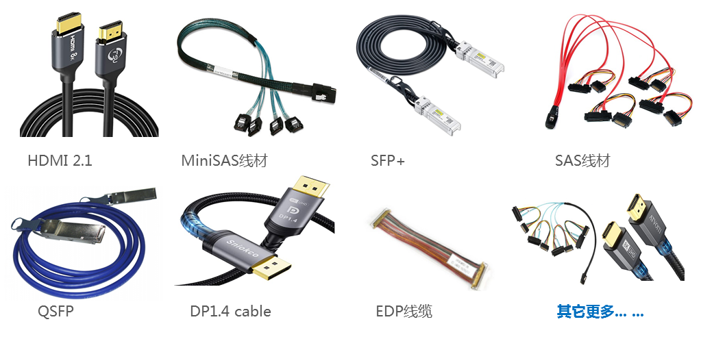 支持對(duì)各種高速數(shù)據(jù)線纜進(jìn)行全自動(dòng)性能測試,系統(tǒng)可適應(yīng)的測試線纜類型展列如下: