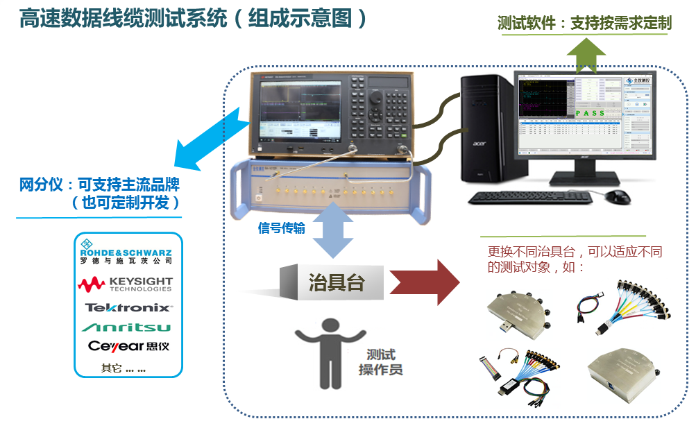 QUANYI 高速數(shù)據(jù)線纜測試系統(tǒng)是一種綜合型的測試體系,可在更換測試夾具的條件下,