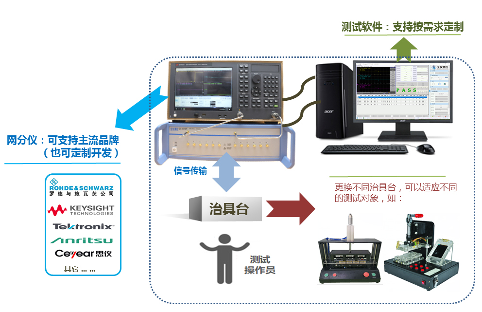 3、一套系統(tǒng)可支持各種類型的天線組件測試(需換測試夾具),保護(hù)客戶投資。